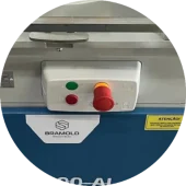 Dispone de una mesa giratoria con bloqueo de precisión, asegurando el bloqueo en los ángulos de corte más comunes. El brazo de corte, con dos amortiguadores, reduce el esfuerzo necesario y proporciona la máxima suavidad durante el corte. Los prensadores frontales y superiores aumentan la seguridad durante el proceso de corte del perfil. La hoja tiene un sistema de lubricación automática, asegurando un corte suave y preciso. Además, la protección articulada de la cuchilla, fabricada en acero al carbono, protege al operador, garantizando una seguridad adicional.
