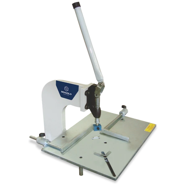 A Prensa para Montagem de Fundos Bramold® é projetada para prensar gravatas em fundos de porta-retratos de maneira manual e rápida. Com esquadros reguladores, ela permite a prensagem de diversos modelos de fundos e diferentes posições de gravata, conforme a necessidade do cliente.